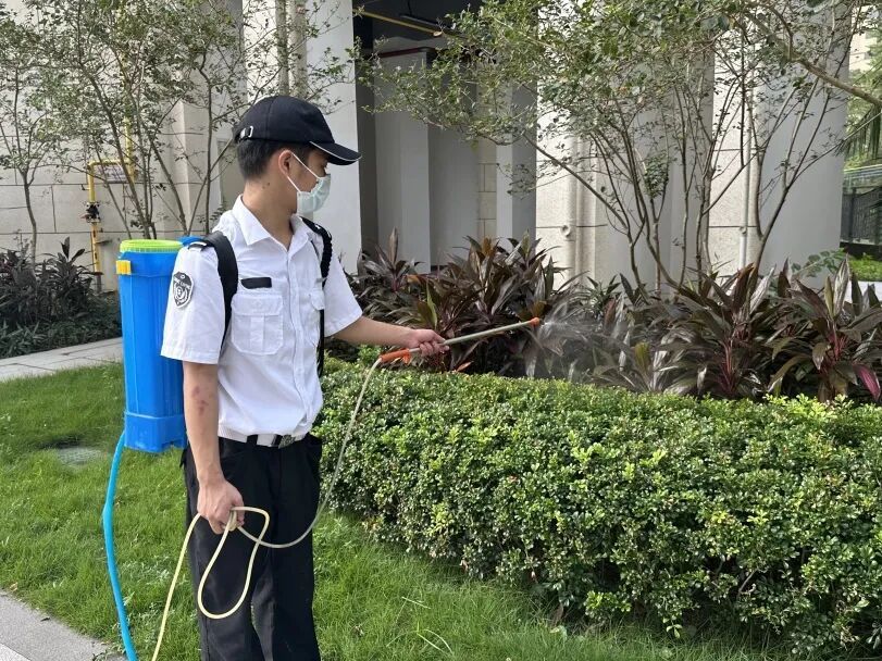 副镇长梁国豪带队到升平社区星河盛世围墙内清理杂草杂物,同步联动物业开展消杀,有效阻断蚊虫孳生。