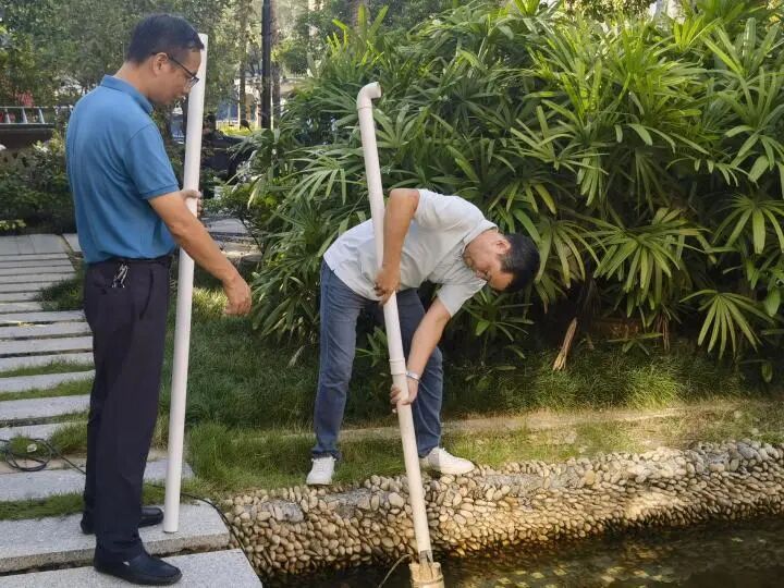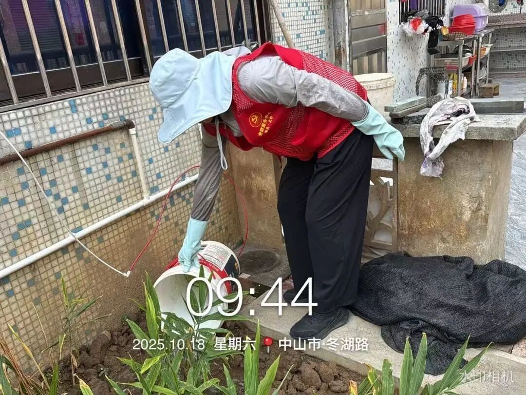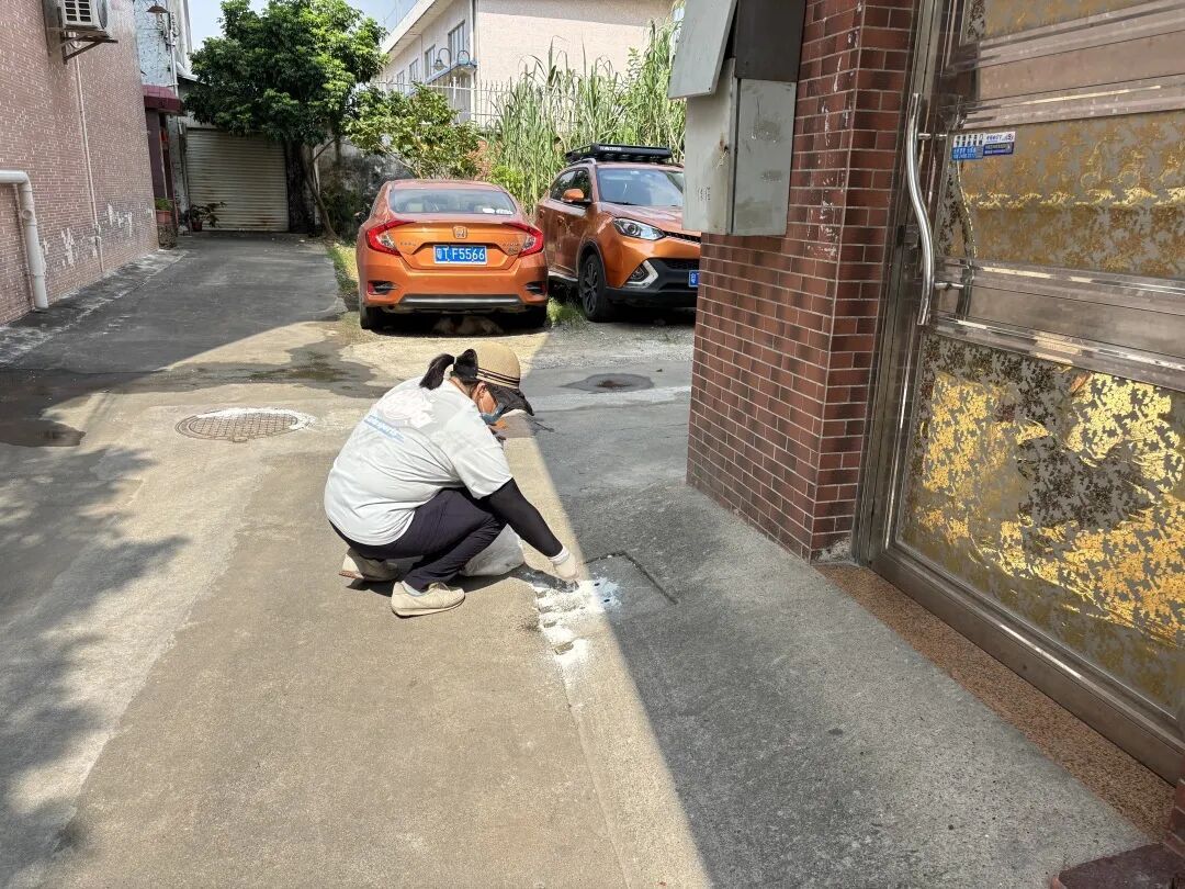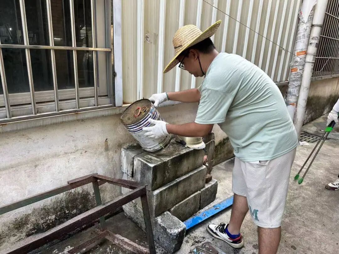 南城社区在镇党委副书记杨炜铭的带领下,将志愿者们分为两组推进工作。一组重点清理积水容器、对下水道投放灭蚊药物,从源头消除蚊虫孳生环境;另一组对辖区内大型闲置地块及其周边区域展开集中整治,为营造洁净健康环境筑牢基础 。