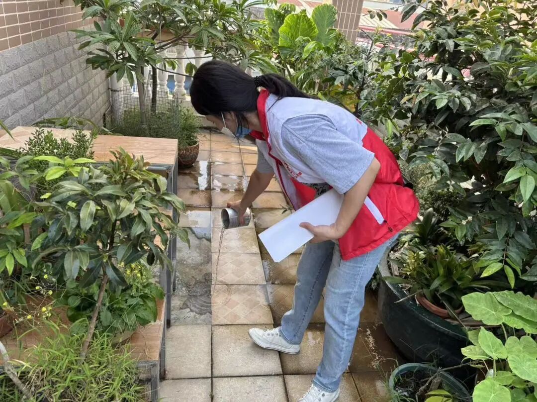 穗西社区针对蚊虫孳生高风险区域实行“拉网式”排查、“清单式”整治,组织工作人员、驻点部门、党员志愿者、群众等深入背街小巷、闲置房屋、小区卫生黑点等隐患点,集中清理卫生死角、堆积杂草杂物,翻盆倒罐清理各类积水容器,从源头切断蚊虫繁殖链条。