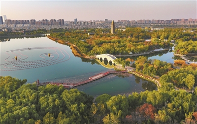 深秋时节,在“塞上湖城”银川市,各城市公园、湖泊湿地秋意盎然、景色怡人。作为西北地区唯一“国际湿地城市”,银川拥有近二百个自然湖泊、沼泽湿地,五处国家湿地公园、一处国家城市湿地公园,湖城秋色成为市民家门口的风景。图为十月二十八日在银川市海宝公园拍摄的秋景。