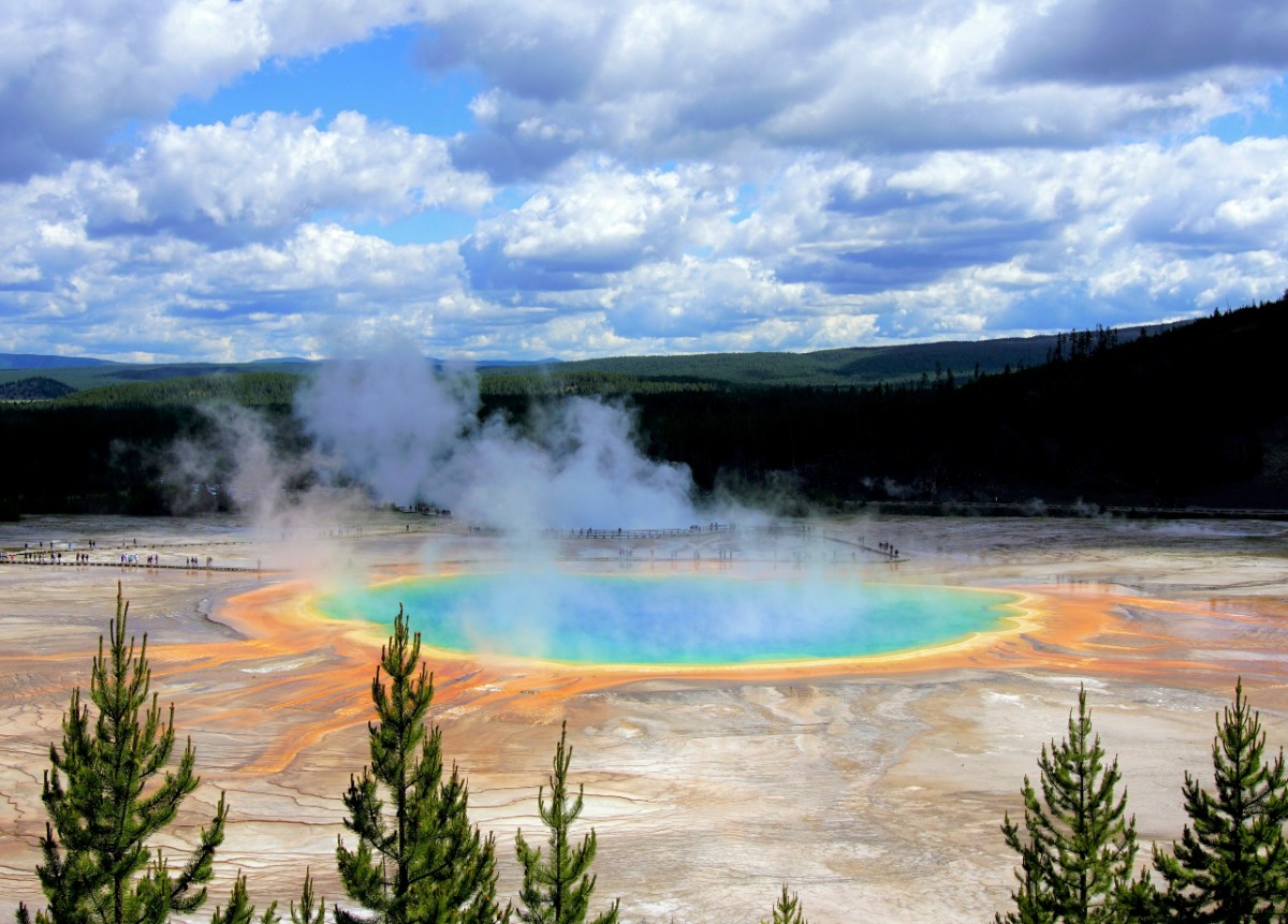作为全球第一座国家公园,黄石以其丰富的地热现象闻名。园内聚集了全球半数以上的间歇泉,包括著名的“老忠实泉”。地下岩浆活动塑造了这里彩池、泥沸泉与火山口的奇幻景观,而野牛、灰狼等大型生物的存在,更让这里成为完整的生态系统教科书。